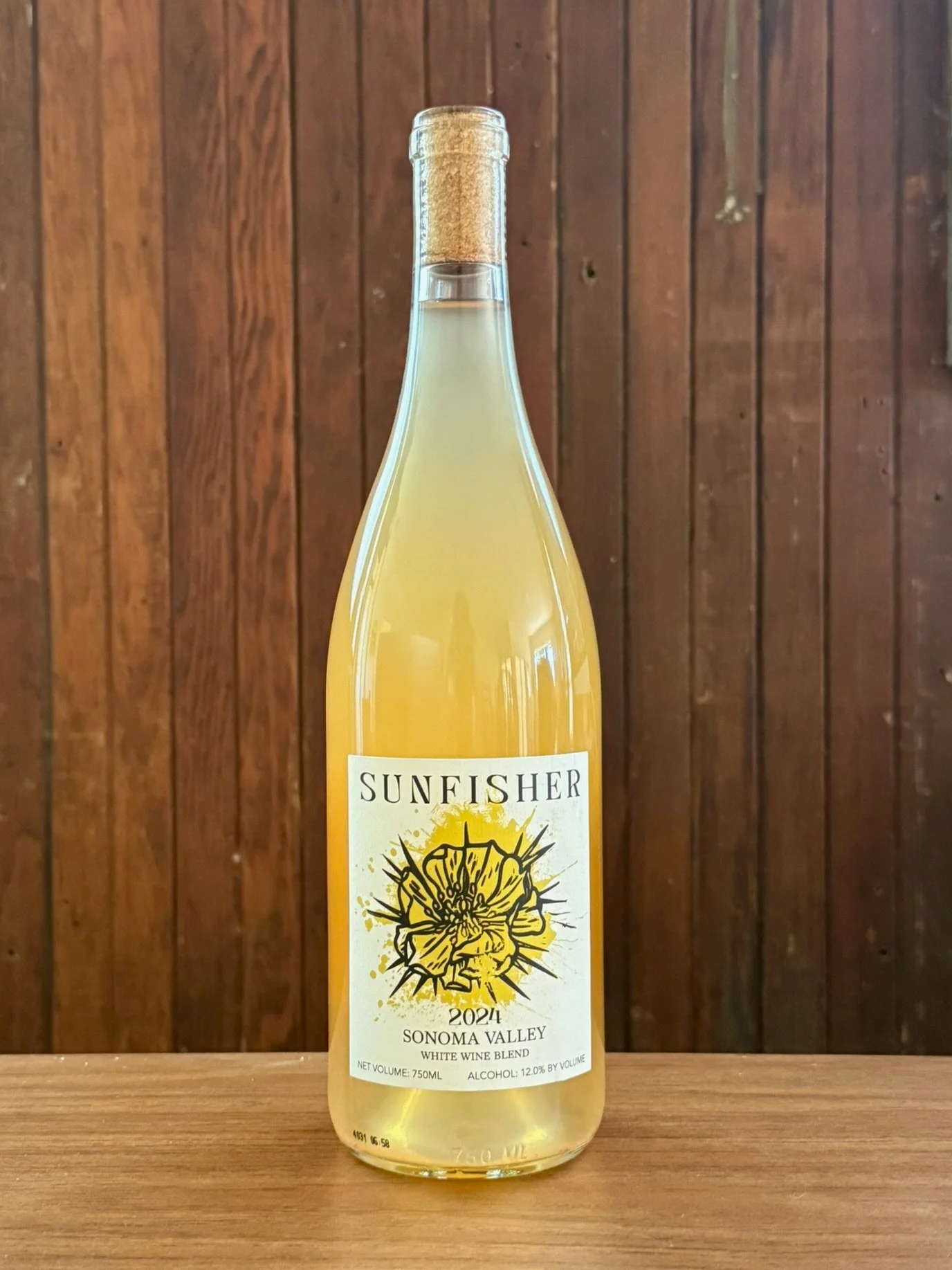 2024 Sunfisher brings to mind the wonderful ability of decomposed lava rock of Moon Mountain and alluvial gravelly loam of sonoma mountain chardonnay to bring texture and brightness to a white wine. This small vineyard of 20 year old head trained vines is a rarity to find in Sonoma Valley. Blended with a bit of PG and GW. The grenache blanc brings refreshing characteristics and mouth tingly acidity with texture and some mouth feel from the semillon. Chardonnay brings structure and the PG, GW bring lots of fruit to balance. A great light white wine for any setting and lighter meal. The lower abv makes it very easy to drink and begs to be revisited - rapidly.